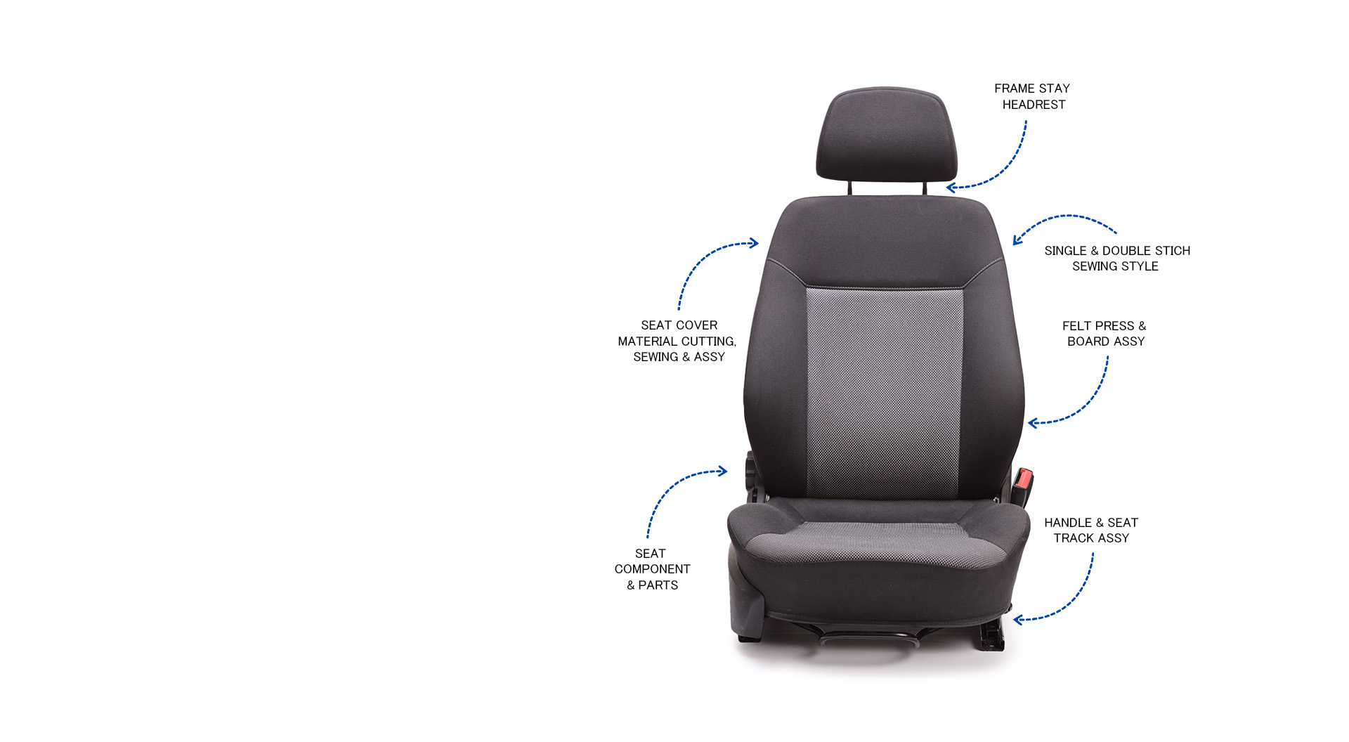 We specialize in high precision cutting, sewing, and seat assembly process for automotive interior products. We go beyond the ordinary, specializing in the creation of superior car seat cover finish goods and the cutting-edge production of material seat covers. We go beyond the ordinary, specializing in the creation of superior car seat cover finish goods and the cutting-edge production of material seat covers.We go beyond the ordinary, specializing in the creation of superior car seat cover finish goods and the cutting-edge production of material seat covers.